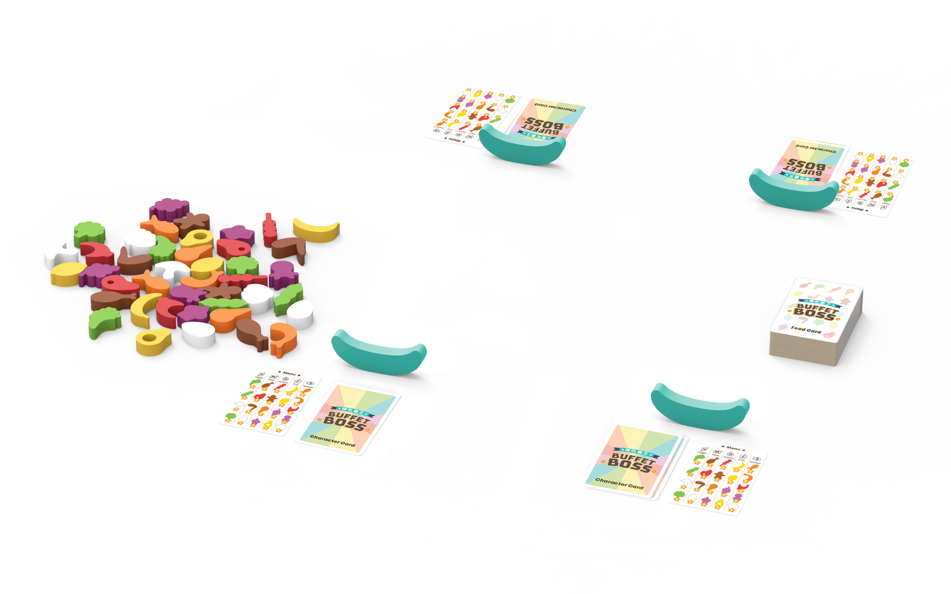 In Buffet Boss, pick your food from the buffet and gain points by stacking food onto your plate. But beware – the food with the tastiest point values are also the hardest to stack! Players will also have Character Cards that give them bonus points for stacking specific types of food.